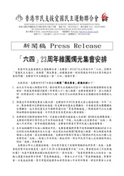 2012年支聯會新聞稿:「六四」23周年維園燭光悼念集會Candlelight Vigil for the 23rd Anniversary of June 4 (2012)