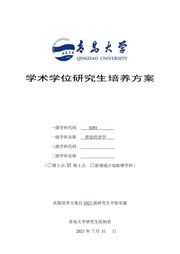 青岛大学 研究生培养方案(2021版) 青岛大学学术学位研究生培养方案(2021版) 0201理论经济学-学术学位-硕士研究生培养方案(经济学院) 0202应用经济学-学术学位-博士硕士研究生培养方案(经济学院) 0301法学-学术学位-硕士研究生培养方案(法学院) 0401教育学-学术学位-硕士研究生培养方案(师范学院) 0402心理学-学术学位-硕士研究生培养方案(师范学院) 0501中国语言文学-学术学位-硕士研究生培养方案(文学与新闻传播学院) 0502外国语言文学-学术学位-硕士研究生培养方案(外语学院) 0602中国史-学术学位-硕士研究生培养方案(历史学院) 0701数学-学士学位-硕士研究生培养方案(数学与统计学院) 0701数学-学术学位-博士硕士培养方案(数学与统计学院) 0702物理学-学术学位-博士硕士研究生培养方案(物理科学学院) 0703化学-学术学位-硕士研究生培养方案(化学化工学院) 0710生物学-学术学位-博士硕士研究生培养方案(医学部) 0711系统科学-学术学位-博士硕士研究生培养方案(自动化学院).doc 0802机械工程-学术学位-研究生培养
