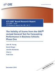 ERIC EJ1109333: The Validity of Scores from the "GRE"® revised General Test for Forecasting Performance in Business Schools: Phase One. ETS GRE® Board Research Report. ETS GRE®-14-01. ETS Research Report. RR-14-17