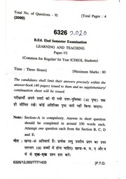 HPU B. Ed 2nd Sem Learning And Teaching Paper VI Question Paper 2020