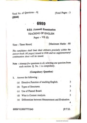 HPU B. Ed 2nd Sem Teaching Of English Paper VII ( E) Question Paper 2019