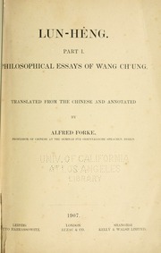 pt. Yi. Philosophical essays of Wang Chong.--pt. II. Miscellaneous essays on Wang Chong