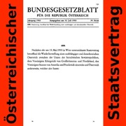 Der Staatsvertrag betreffend die Wiederherstellung eines unabhängigen und demokratischen Österreich, wurde am 15. Mai 1955 in Wien im Schloss Belvedere von Vertretern der alliierten Besatzungsmächte USA, der Sowjetunion, Frankreichs und Großbritanniens sowie der österreichischen Regierung unterzeichnet und trat am 27. Juli 1955 offiziell in Kraft.