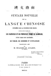 Syntaxe nouvelle de la langue chinoise fondée sur la position des mots, suivie de deux traités sur les particules et les principaux termes de grammaire, d'une table des idiotismes, de fables, de légendes et d'apologues traduits mot à mot