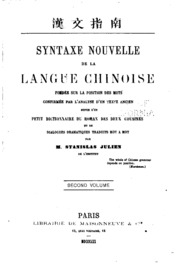 Syntaxe nouvelle de la langue chinoise fondée sur la position des mots, suivie de deux traités sur les particules et les principaux termes de grammaire, d'une table des idiotismes, de fables, de légendes et d'apologues traduits mot à mot