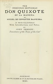 The most influential work of literature from the Spanish Golden Age and the entire Spanish literary canon translated by John Ormsby (1885) PART I GENT LEMAN BOOK I THE DETAILS OF THE ADVENTURE DISCOVERED IN THE ARCHIVES OF LA MANCHA An eccentric gentleman from an unnamed village in La Mancha is mentioned. The man has neglected his estate, squandered his fortune, and driven himself mad by readi
