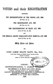 Voters and Their Registration, Comprising the Representation of the People Act, 1884 (48 Vict ...